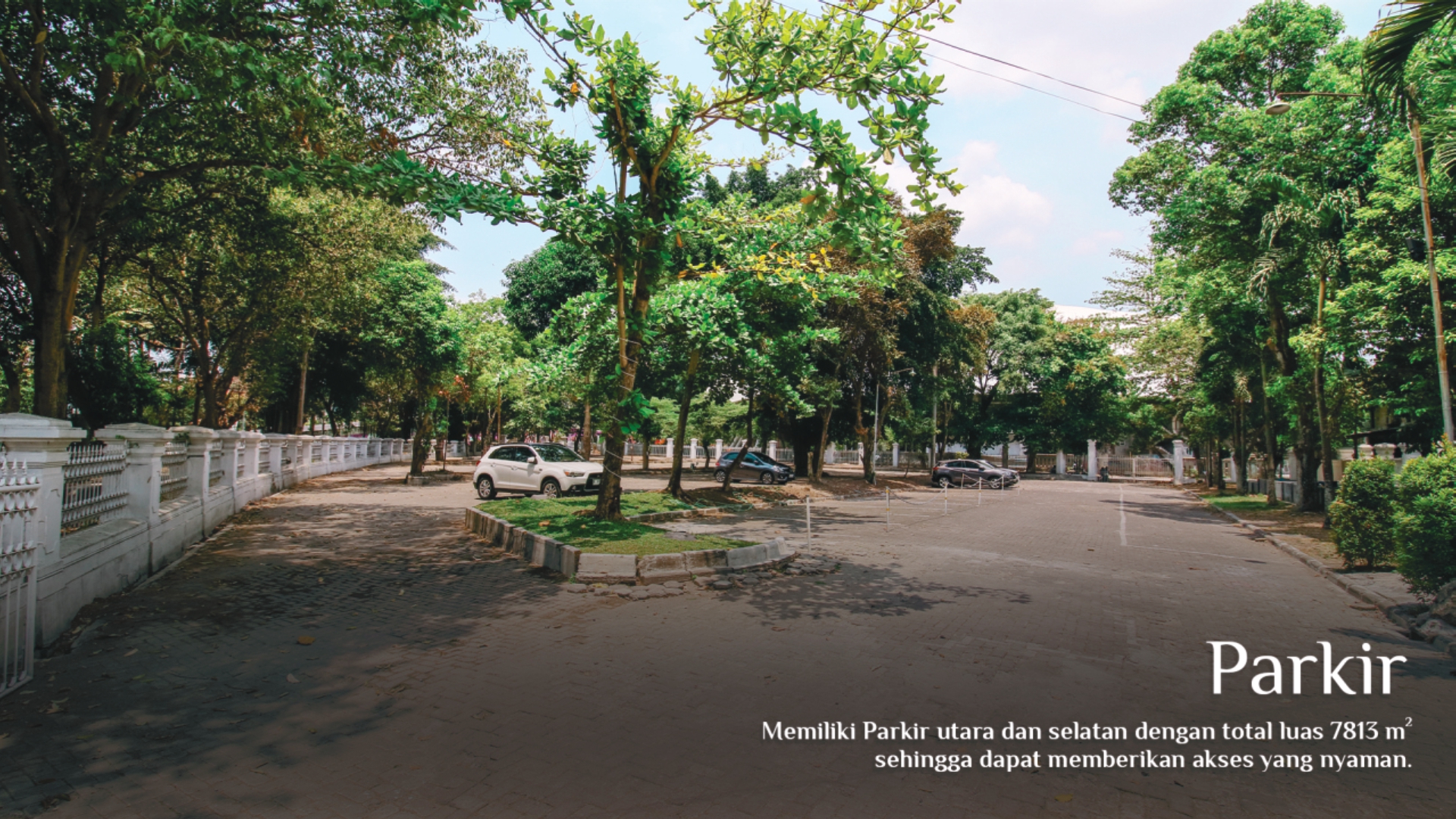 Memiliki tempat parkir disebelah utara dan selatan yang cukup luas dengan total luas 7.813 m2, sehingga dapat memberikan akses yang nyaman untuk kendaraan tamu parkir. Selain tempat parkir, terdapat juga taman yang berada di dalam halaman penginapan yang cukup indah, asri serta luas, dan bisa digunakan untuk spot foto.